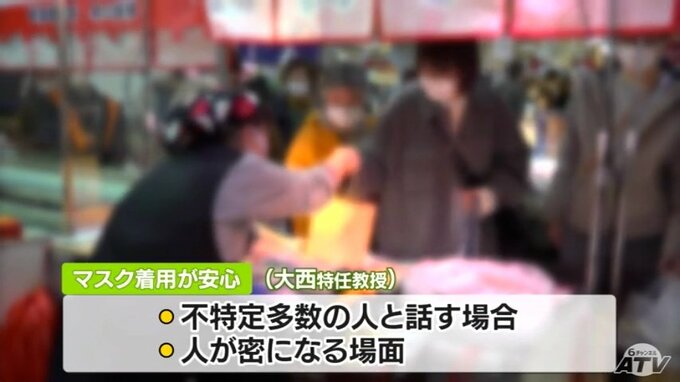 さらに大西特任教授は▽不特定多数の人と話す場合や▽「人が密になる」場面では着用が安心だと話します。