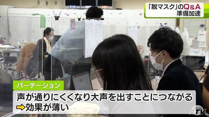 会話がない場合にはマスクは外しても良いものの、近い距離で会話する場合には、マスクを着用した方が良いとのことです。ただ、今や当たり前となったパーテーションについては声が通りにくくなり大声になってしまうため、感染防止の効果は薄いと指摘します。