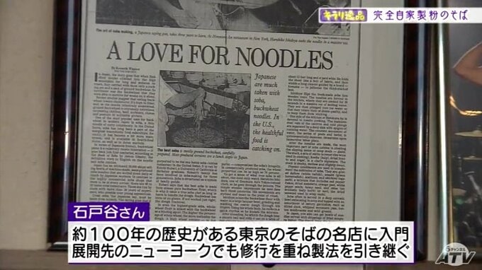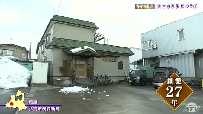 弘前市茂森新町にたたずむ「彦庵」。27年前、石戸谷さんが30歳の頃、独立開業しました。かつて石戸谷さんは約100年の歴史がある東京のそばの名店に入門し、海外展開先のニューヨークでも修行を重ねた末、この店の製法を引き継いだと言います。