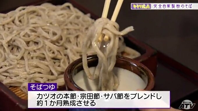 このこだわりを引き立てるそばつゆは、かつおの本節、宗田節、さば節をブレンドし、約1か月熟成させます。こうしたすべてに手間ひまかけた「彦庵」のそばが、ほかとは一味違うと言わしめるゆえんを確かめました。