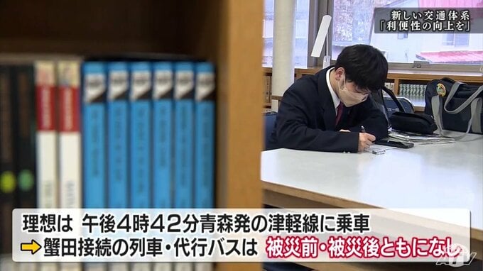 こうしたなか、住民から多く上がるのは利便性の向上を求める声です。現在の運行方式は住民にとって通勤・通学に大きな負担を強いられているのが現実です。青森西高校の2年生、佐藤李龍(さとう・きりゅう)さんです。毎日、外ヶ浜町三厩地区から通学していますが、津軽線の利便性が悪いため学校生活にも制限があるといいます。