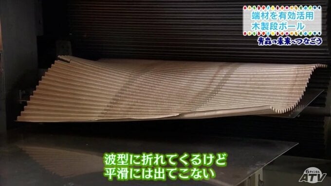 青森県平川市の企業が木材を加工したときに出る「端材(はざい)」を有効活用するために木製の段ボールを生み出しました。