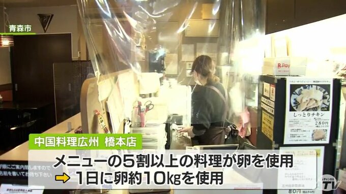 青森市の「中国料理広州」。こちらではメニューの半分以上が卵を使う料理で、1日に約10キロを使います。そのなか経営の重荷となっているのが高病原性鳥インフルエンザです。