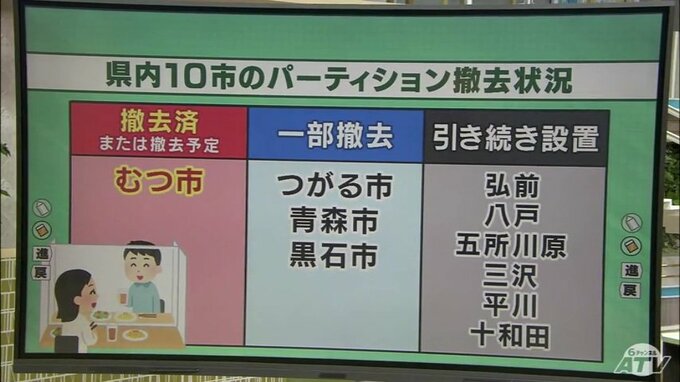 大鰐町で特産の「温泉もやし」を使ったラーメンが人気の山崎食堂を訪ねました。飲食店での感染対策基準が緩和され、2月にテーブルからパーティションを撤去しましたが、すぐ処分する決断には踏み切れなかったといいます。