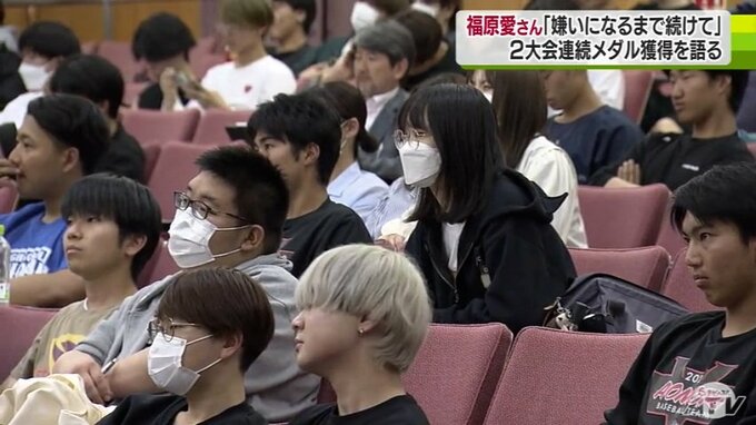 ※学生は「福原愛さんの今までの努力とかけがとかでつらかった経験がとてもすごくて自分も福原愛さんのようにしっかり努力をして物事に取り組めるように頑張りたい」