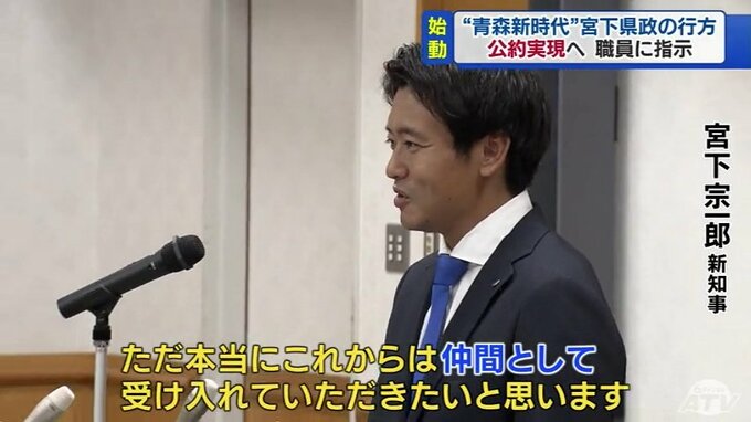 宮下新知事がきょう、くり返し口にした県職員との協力。このあと臨んだ職員への訓示では自身がむつ市長時代に県庁と折衝した経験を念頭に、こう語りかけました。