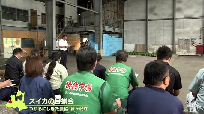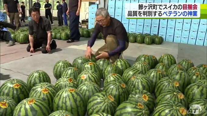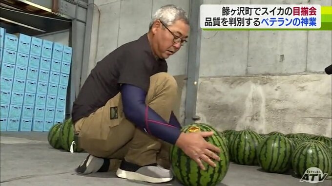 スイカの出荷基準となる品質や等級を選別する「目揃会」が青森県鰺ヶ沢町で開かれました。その選別方法は代々受け継がれてきた神業とされる方法です。