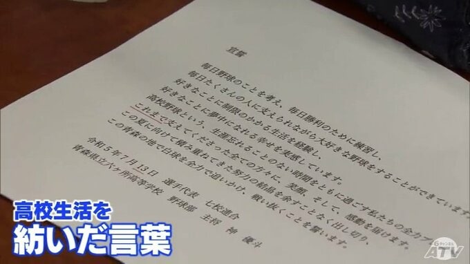 青森県内の全ての球児を代表して神選手は選手宣誓の大一番に臨みます。