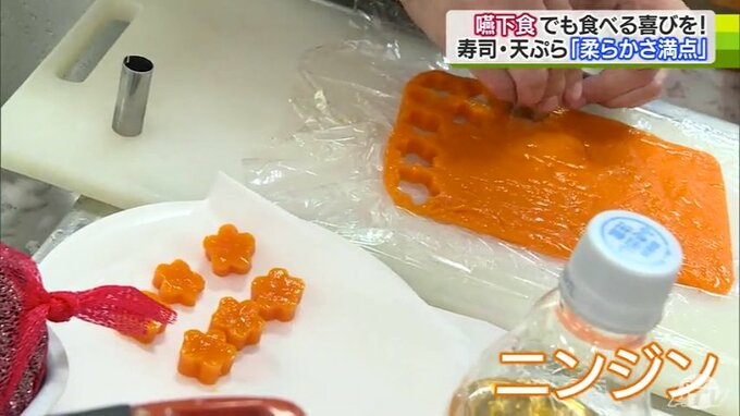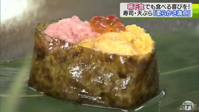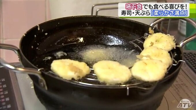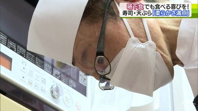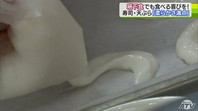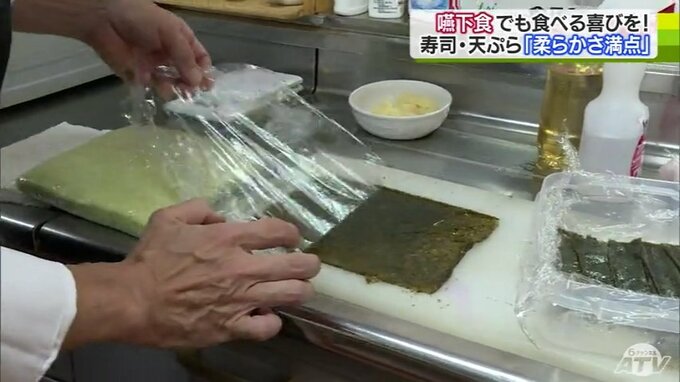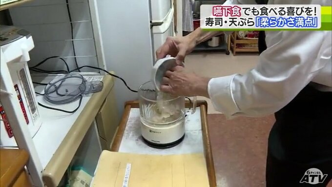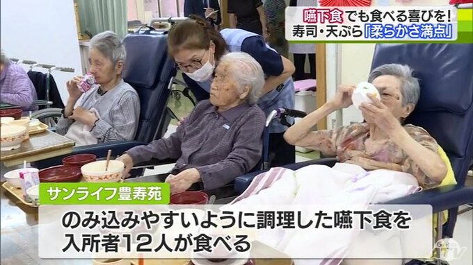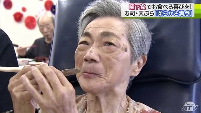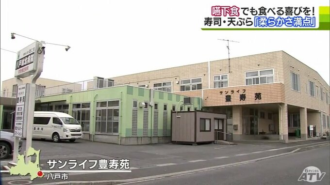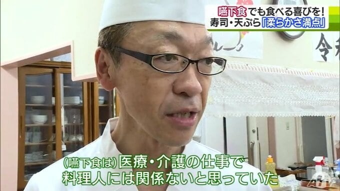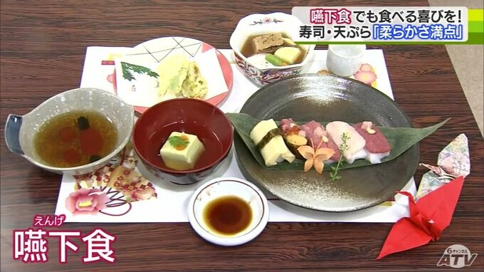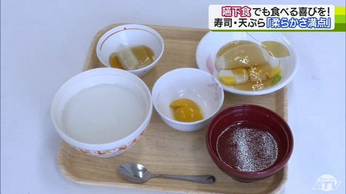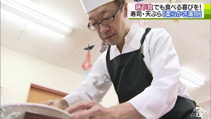 食べ物を咀嚼する力が弱い人のために調理された「嚥下食(えんげしょく)」。食材にとろみをつけるなどしてのみ込みやすくしています。その嚥下食の常識を打ち破る料理が21日、八戸市の高齢者施設で提供されました。彩りもよく、のみ込みやすい寿司や天ぷら。施設の入所者が久しぶりに実感したのは食べる喜びです。
