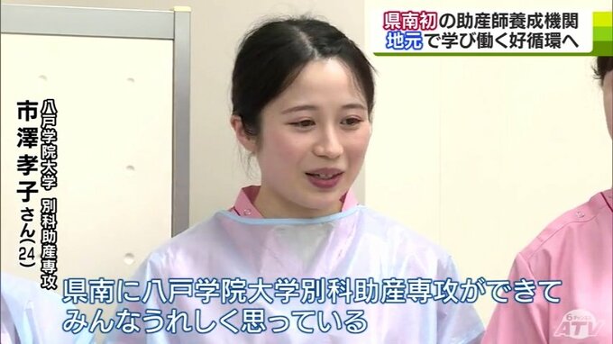 ※市澤孝子さん(24)「県外に進学もしくは就職する予定だったので県南に八戸学院大学別科助産専攻ができて、みんな嬉しく思っている」