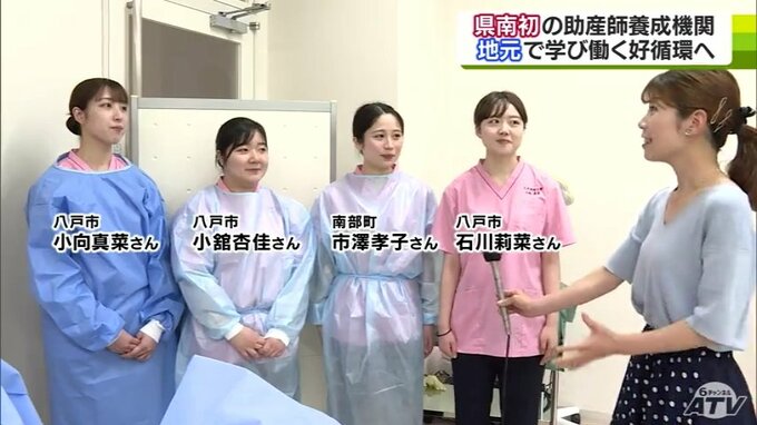 こうしたなか、この春、青森県内で4番目の助産師養成機関となったのが八戸学院大学です。「別科助産専攻」1期生は4人、石川莉菜さん、小舘杏佳さん、市澤孝子さん、小向真菜さんです。