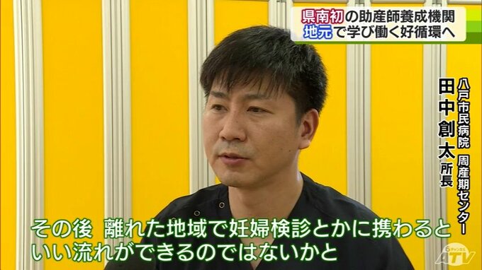 ※八戸市立市民病院 周産期センター 田中創太所長「今後、医師の集約化など厳しい状況になっていく可能性があるので、最初のうちに高度な医療を行う病院で研修した助産師がその後、離れた地域に行って妊婦検診とかそういう医療に携わるといい流れができるのではないかと」