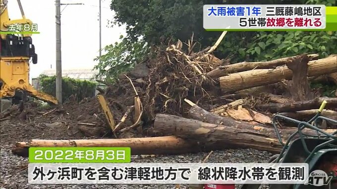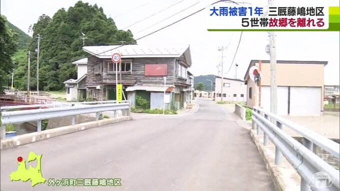 1年前の8月3日、青森県内で初めて線状降水帯が確認され、外ヶ浜町三厩藤嶋地区では住宅23棟が被害を受けました。全壊した住宅を再建した人がいる一方で、5世帯9人が地区を離れました。あの日から一年、藤嶋地区の今とは。