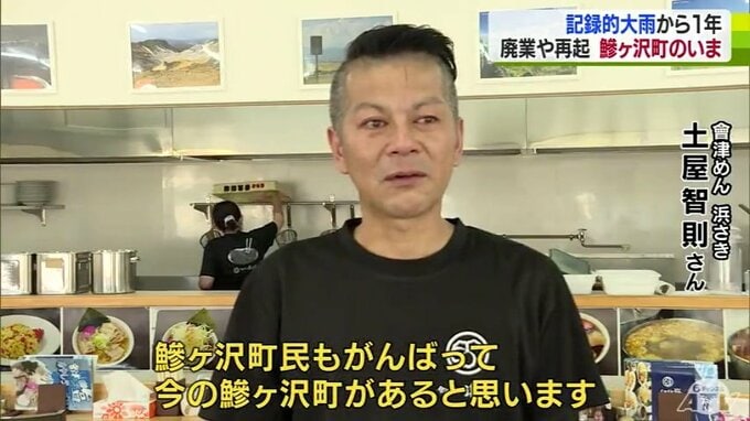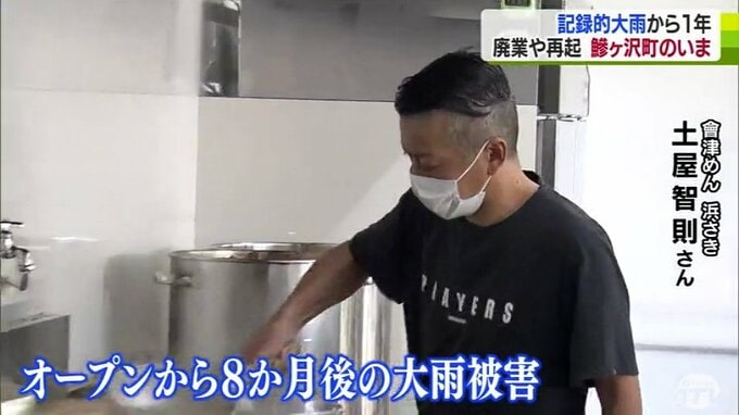 廃業する店があった一方、復興へ歩んだ店もありました。「會津めん浜さき」です。店主の土屋智則さんは当時、店の入口に土のうを積んで店内の浸水を防ごうとしましたが、少なくとも80センチ以上の水が流れ込みました。店のオープンからわずか8か月後の大雨被害。