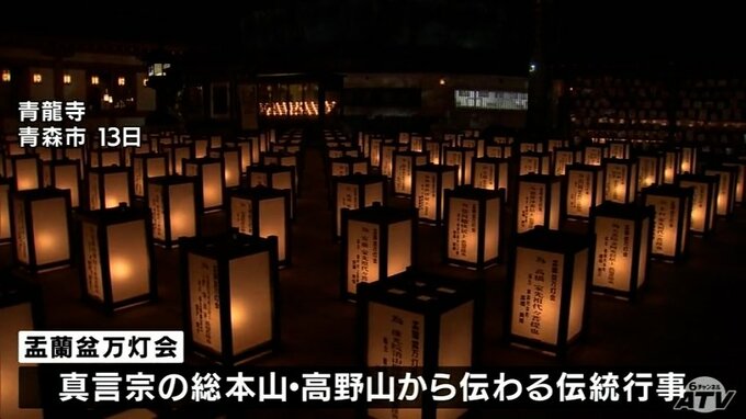 祈りを込めて灯ろうに火「安心した気持ちで見守れるように」青龍寺で盂蘭盆万灯会 2023年8月14日(月) 12:42 国内 青森市の寺で先祖や戦没者などを供養する盂蘭盆万灯会が始まり、厳かな読経が周囲を包みました。青森市の青龍寺で行われる盂蘭盆万灯会は先祖や戦没者などへの供養の祈りを込めて灯ろうに火を灯す行事で、真言宗の…