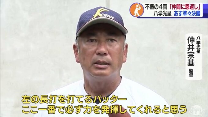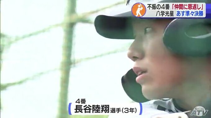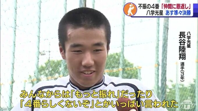 それでも「光星の4番」という誇りと意地で不調を乗り越え、前の試合で甲子園初ヒット。仲井監督をはじめ、チームメイトの思いをバットに乗せます。