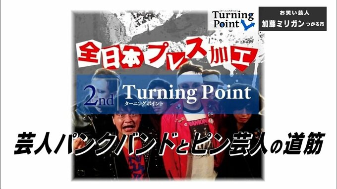 芸人の養成所に入っていたが、高校の同級生とコンビを組みフリーで活動。しかしお笑いの方向性の違いで解散。現在ピン芸人で活動している加藤は芸人同士の交友関係が広く、人望が厚い。その繋がりで昔憧れたパンクロックの活動の場が生まれる。