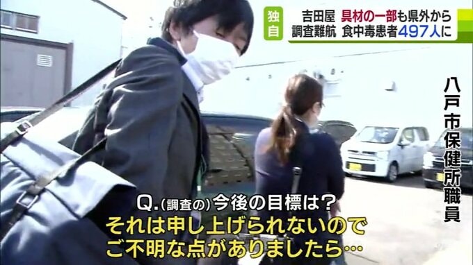 29日午後1時過ぎ、吉田屋に入った保健所職員は記者の問いに明確には答えませんでした。全国で拡大が続く吉田屋の弁当による食中毒。八戸市保健所のまとめでは、28日時点で長野県が加わり29都道府県で497人の患者が確認されています。また、原因となった弁当も21種類に増えました。