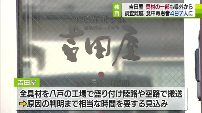 全国で集団食中毒が発生した青森県八戸市の「吉田屋」が製造した弁当。これまで岩手県の業者が炊いた米を使っていたことがわかっていますが、具材の一部も県外から取り寄せていたことが新たにわかりました。患者は28日の発表から8人増え、497人に拡大しています。