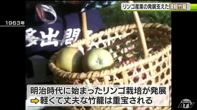 青森県の伝統工芸品に指定されている『津軽竹籠』。“津軽富士”岩木山などで採れる根曲がり竹を材料に弘前市岩木地区で作られてきました。かつては軽くて丈夫だとして青森県内で広く使われていましたが、その普及には国内随一の生産量を誇る青森県のリンゴ産業の発展が深く関わっていました。