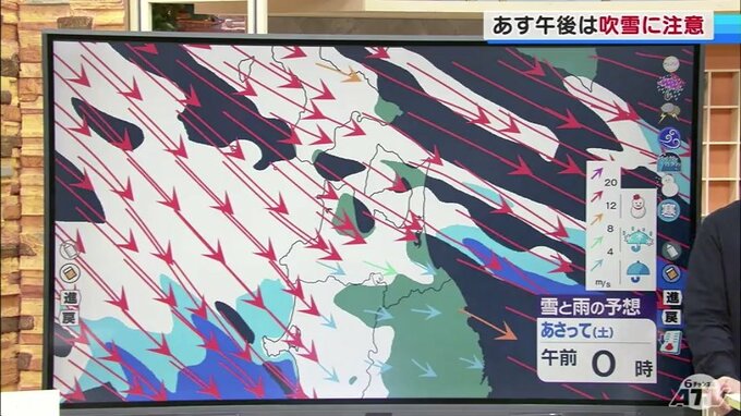 さらに詳しく。24日の予想天気図を見ますと。前線が抜けまして上空には今季一番の寒気が流れ込んでくる。25日(土)あたりが寒気のピークで、どうやら、11月としては“過去最強クラス”の寒気ということになりそう。それが流れ込んでくるということですから午前中はまだ雨でも午後になってきますと、だんだん雪に変わって吹雪いてくるという状況になっています。