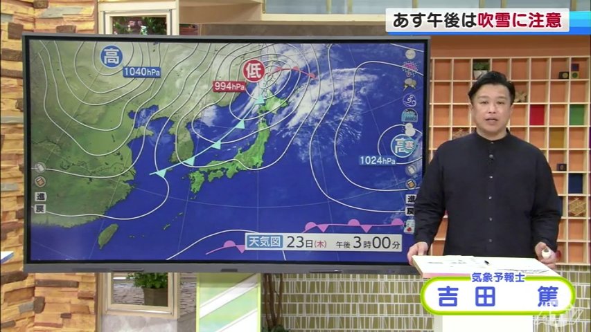 週間予報ですが25日(土)がしっかり雪マークがついてます。気温の方も1℃ですから真冬並みですね。本当に冬です。26日(日)にようやく落ち着くような状況になっています。土曜日は北日本は強い冬型が続きます。今季一番の寒気も入ってくるということで、1日中雪が降って、吹雪いてる。さらに積雪が大きく増えるところも出てきそうです。気温も場所によっては真冬日というところも出てくるかもしれません。震える寒さになりそうです。