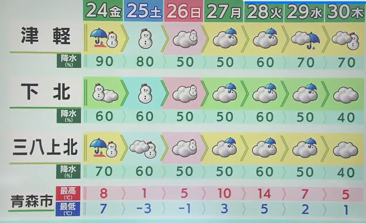 24日~26日の青森県内の天気はどうなるのでしょう…?以下、気象予報士・吉田篤さんの解説です。