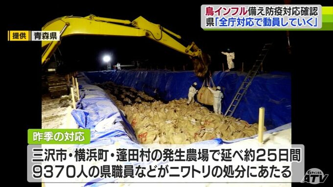 「いつどこで発生してもおかしくない状況」今季2例目確認の「高病原性鳥インフルエンザ」 昨季延べ9670人が処分作業の青森県 発生時には県職員全員態勢で防疫対応を 2023年11月27日(月) 19:15 国内 今シーズン、国内で1例目と2例目となる高病原性鳥インフルエンザが発生したことを受け、青森県は職員など集め発生した際の対応を確認しました。会議には県職員と東北農政局青森県拠点の職員、合わせて約40人が出席…