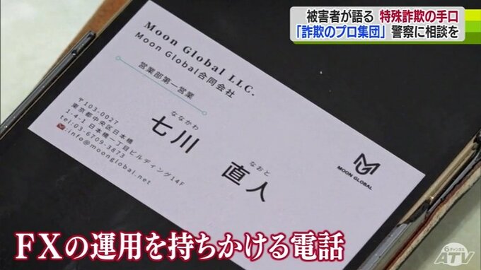 「金融商品詐欺」。特殊詐欺の手口のひとつです。きっかけは、「ムーングローバル」の「ナナカワ」と名乗る男からのFXの運用を持ちかける電話でした。