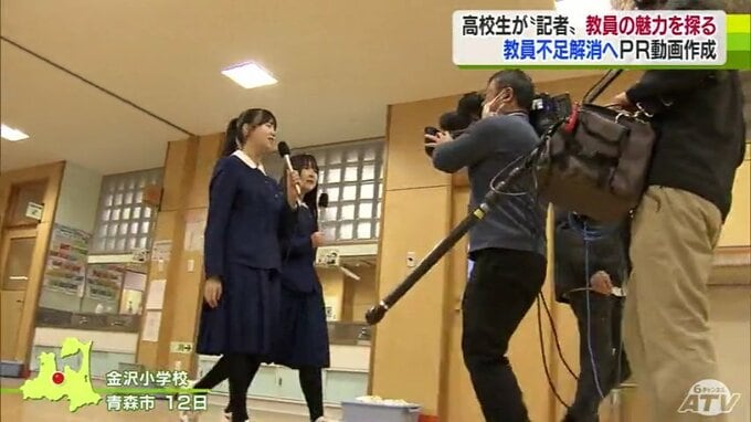 ATVの注目記事まとめ! 深刻な『小学校教員の不足』37年連続で減少止まらず… 歯止めの一手となるのは“高校生記者”? 「小学校の先生の『仕事のやりがい』や『苦労』って?」女子高生が取材してみた 2023年12月14日(木) 16:30 国内 青森県内の小学校の教員は年々減少していて、欠員がある学校も増えています。これを受けて県教育委員会が新たに取り組んでいるのが高校生を使った広報活動です。 生徒が“記者”となって教員の魅力を取材しています。