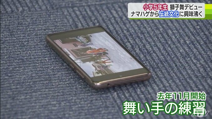 さらに獅子舞について掘り下げていこうと思った工藤くん。自分が住む西滝地区では獅子舞を伝承する人は見つからなかったため、わざわざ油川地区にまで足を伸ばし、保存会に入ることに。2023年11月からは踊り手として練習していて、いまでは、お手本の動画を見ながらの自主練習も欠かしません。
