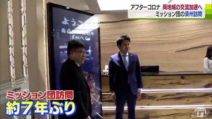 ATVの注目記事まとめ! 「多くの観光客に来てもらいたいし交流を深めていきたい」約7年ぶりの訪問 韓国・済州島に青森県・宮下宗一郎知事など『ミッション団』 交流再開の足掛かりに… 実質2日間の日程で実施した12の交流事業 2024年1月19日(金) 17:33 国内 1月20日に大韓航空の青森―ソウル線の定期便が再開するのを前に、青森県が姉妹都市協定を結ぶ韓国・済州島に宮下宗一郎知事を始めとするミッション団が訪問しました。 約7年ぶりの訪問でコロナ禍で停滞していた両地域の交流が加速します。
