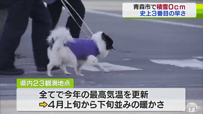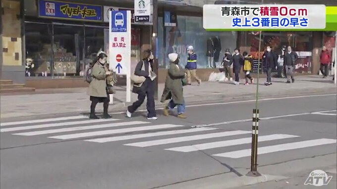 青森市の最高気温は14.6℃まで上がり、2023年より1か月ほど早く積雪が0センチとなり、道行く人の服装も薄着の人が目立ったほか、自転車を漕ぐ人の姿も見られました。