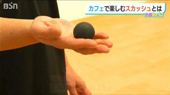 そして、ゴム製のボールはピンポン玉くらいの大きさで、中が空洞でおよそ25グラムと軽いのですが、跳ねません。林さんに基礎を教えてもらい、いざ挑戦です。