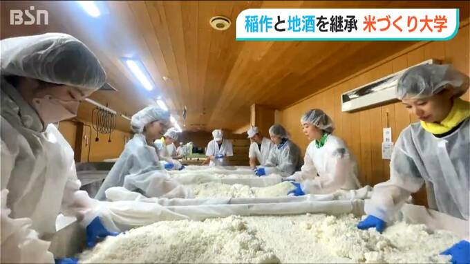 ここで開かれる『米づくり大学』は、米づくりから酒造りまでを1年を通して学ぶプログラムで、1期生の11人は去年4月から田植えや稲刈りなどを体験し、オンラインでの講座にも参加してきました。