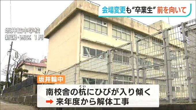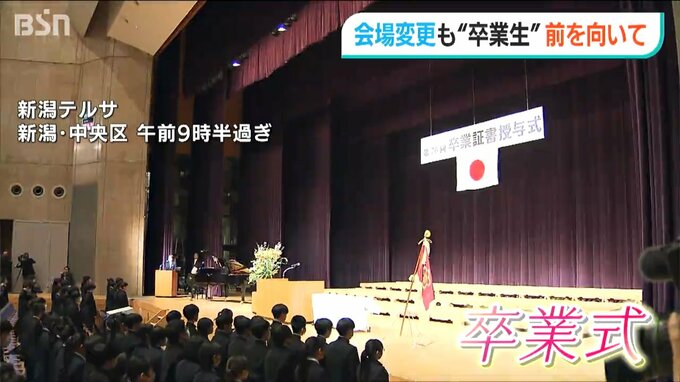 能登半島地震の被害を受け校舎が使えなくなった新潟市 西区の坂井輪中学校。5日、場所を移して卒業式が行われ、3年生たちが門出の日を迎えました。