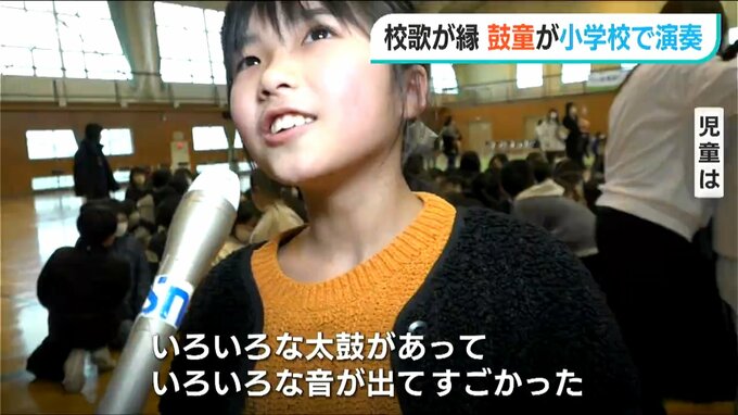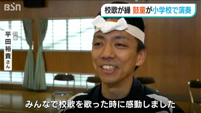 【鼓童 平田裕貴さん】「みんなで校歌を歌った時に感動しました。きょうの子どもたちのキラキラした目を思い出しながら、これからも全国回って演奏していきたいなと思いました」