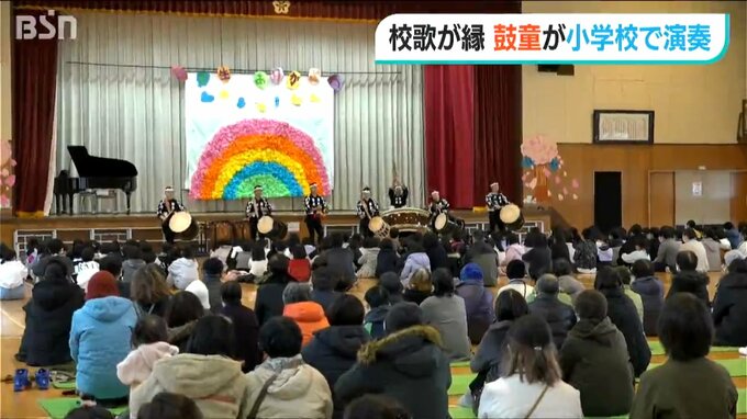 新潟県 佐渡市の太鼓芸能集団「鼓童」が小学校で迫力ある演奏を披露しました。公演のきっかけとなったのは、この学校の校歌です。