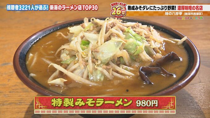 まずご紹介するのは、名物の「特製みそラーメン」が大人気!新潟市西蒲区にある「味の八珍亭」です。“新潟5大ラーメン”の『新潟濃厚味噌』を代表する名店のひとつで、視聴者からは「30年前からのファン」「八珍亭のみそが一番おいしい」など熱愛コメントも多数寄せられました。