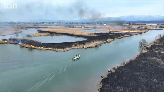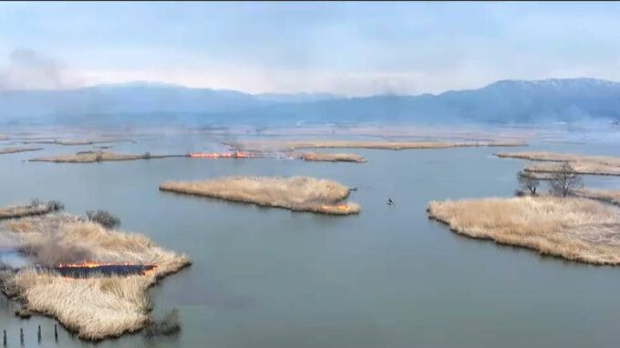 新芽を呼ぶ『ヨシ焼き』― 新潟市 福島潟の生物環境を保つ「春の風物詩」 2024年3月21日(木) 11:07 国内 暮らし・マネー 3月17日に行われた春の風物詩「ヨシ焼き」。 新潟市北区の福島潟で行われました。 新潟市北区 福島潟の春の風物詩「ヨシ焼き」 ※特別な許可を得て撮影しています 川や湖の水辺に生えている、ヨシという植物を中心に焼くことで、新芽の促進や害虫の駆除などが進み、福島潟の生物環境を保ちます。 新潟市北区 福島潟の春の風物詩「ヨシ焼き」 ※特別な許可を得て撮影しています