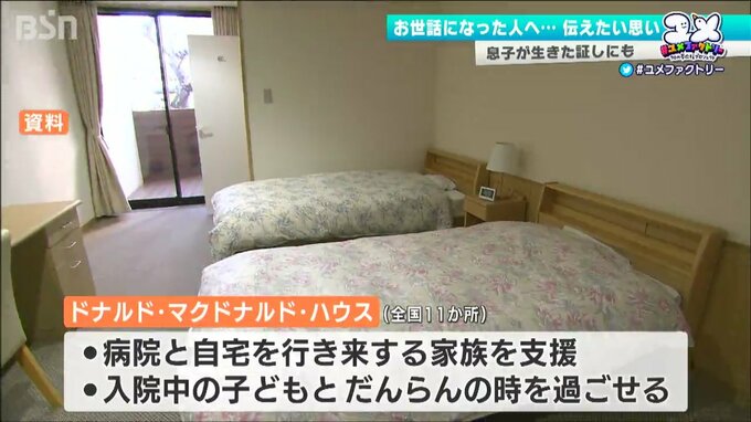 現在全国11か所にある『ドナルド・マクドナルド・ハウス』。病院と自宅の行き来で精神的・経済的に大きな負担が強いられる家族を支援し、入院中の子どもと家族団らんの時を持つことができる施設です。こうした施設は「家族にとってありがたい」と田所さん夫妻も感じています。