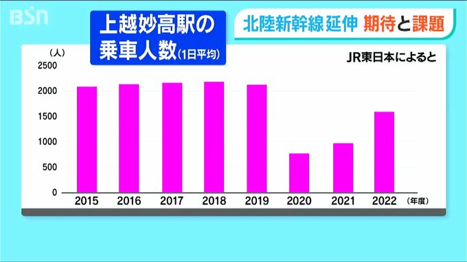 開業から2019年度までは新幹線の利用者が1日平均2000人以上で、それに応じて観光客も順調に増加。しかし、ウイルス禍に突入した2020年度は利用者が1日平均1000人を割り込み、観光客も激減。昨年度の年間の観光客も目標の半分ほどでした。
