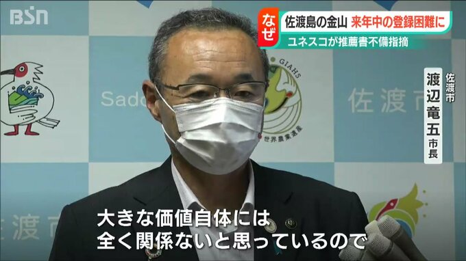 【佐渡市 渡辺竜五市長】「大きな価値自体には全く関係ないと思っているので、きちっともう一度精査をして、国が推薦書を改めて出すと言ってくれている以上は、しっかりと協力をしながら出していきたいし、一緒にもう一回頑張ってやりたい」