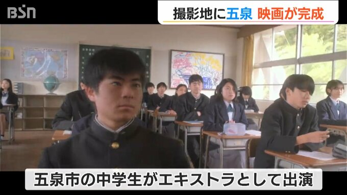 この映画のエキストラには、五泉市内の中学生も出演しています。