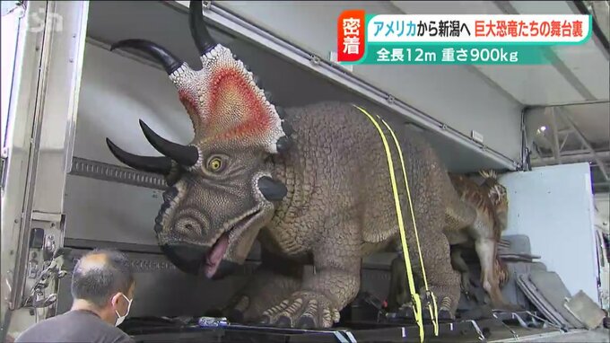 今回新潟にやってきた“動く”恐竜たちは全部で11体。実はみんなおよそ一か月かけて、アメリカから船でやってきたのです。