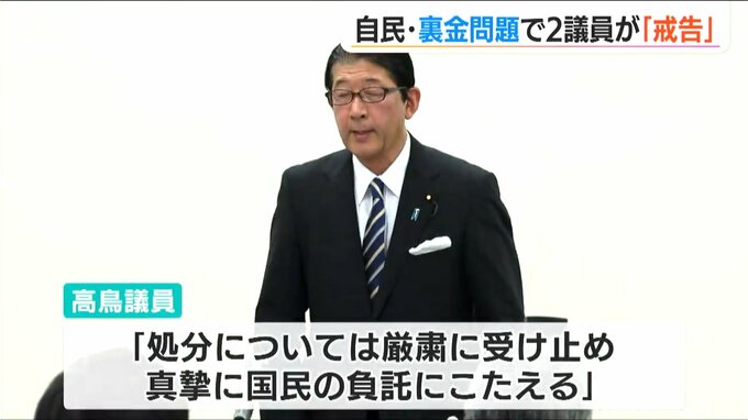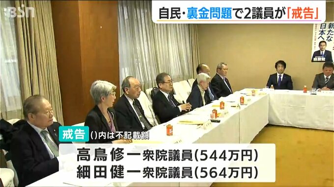 新潟県関係では、収支報告書への不記載が500万円以上だった高鳥修一衆議院議員と細田健一 衆議院議員の2人が「戒告」処分を受けました。