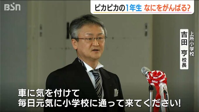 【 上所小学校 吉田亨 校長】「きょうから上所小学校が皆さんの学校です。車に気を付けて毎日元気に小学校に来てください」