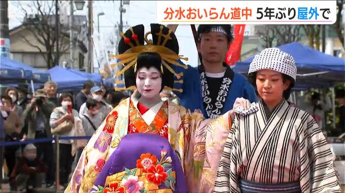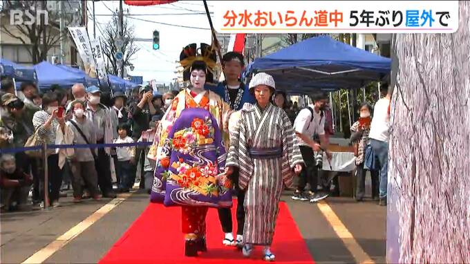 今回の『分水おいらん道中』には、燕市のPR大使を務めるBSN新潟放送の大塩綾子アナウンサーも「染井吉野太夫」として参加しました。