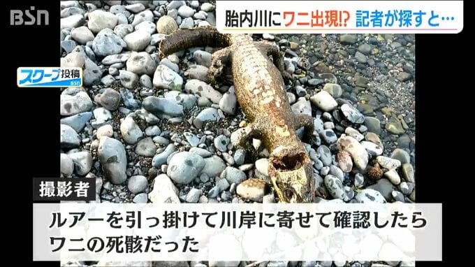 「ルアーを引っ掛けて川岸に寄せて確認したらワニの死骸だった」
