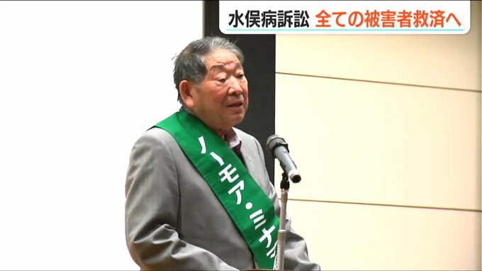 「手の先に感覚がなく、お茶碗やお箸を落とします。手が震えて字がうまく書けません。海か川かの違いはあっても、生活も病状も新潟の皆さんと同じです。全ての水俣病被害者を救済するためには、新潟の皆さんには絶対勝ってもらわなければなりません」